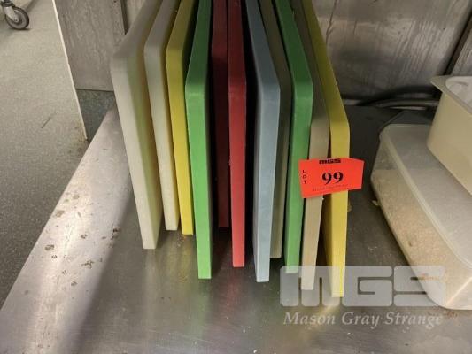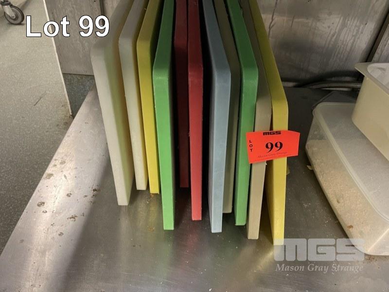 11 x HEAVY DUTY CUTTING BOARDS & RACK