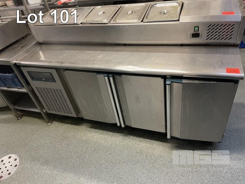 CHEFS COUNTER FRIDGE 3 DOOR, 180cm STAINLESS STEEL CASED SELF CONTAINED