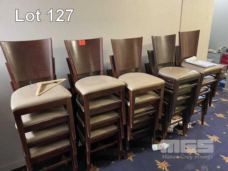20 x DINING CHAIRS, TIMBER FRAMED & VINYL PADDED UPHOLSTERED SEAT