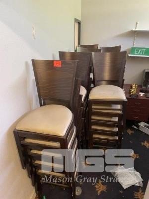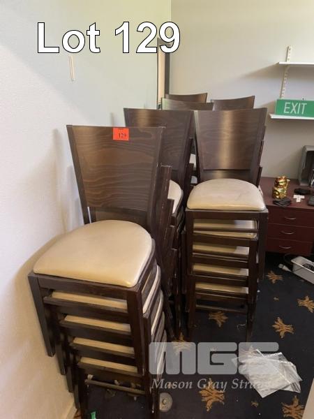 34 x DINING CHAIRS, TIMBER FRAMED & BACK, VINYL PADDED UPHOLSTERED SEAT