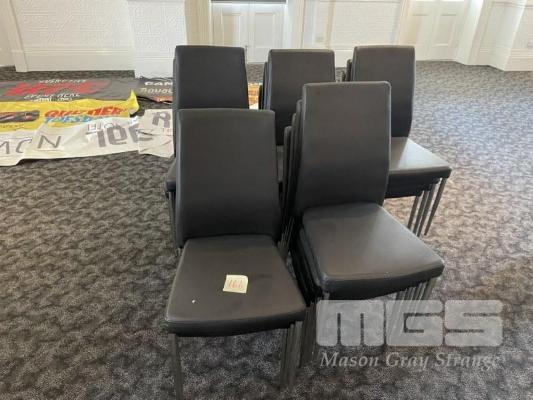 19 x HIGH BACK DINING CHAIRS, BLACK VINYL UPHOLSTERED