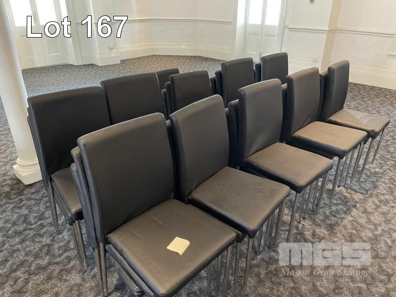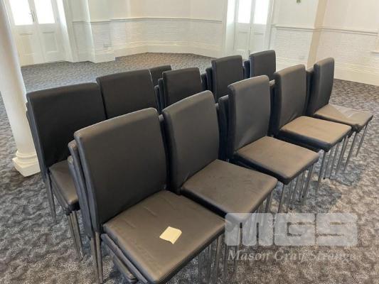 31 x HIGH BACK DINING CHAIRS, BLACK VINYL UPHOLSTERED