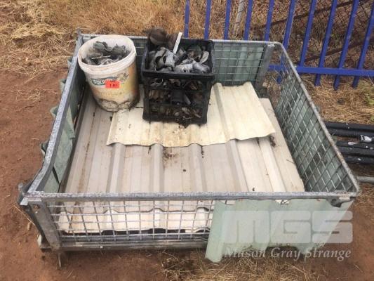 GALV MESH WIRE STILLAGE, 1050 x 1050mm & 2 x TUBS PIPE CLAMPS, GALV