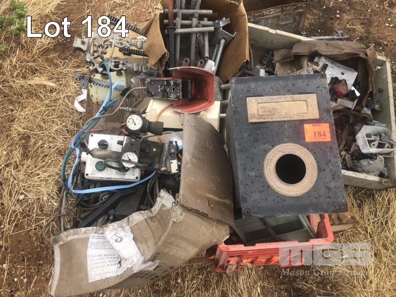 ASSORTED FENCING HARDWARE, FENCE CAPS, LETTERBOX, DEADMAN SWITCH, AIR REGULATOR, HINGES, ETC