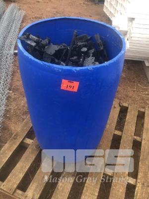 1 x 200 LITRE PLASTIC DRUM CONTAINING HEAVY DUTY SPRING GATE HINGES