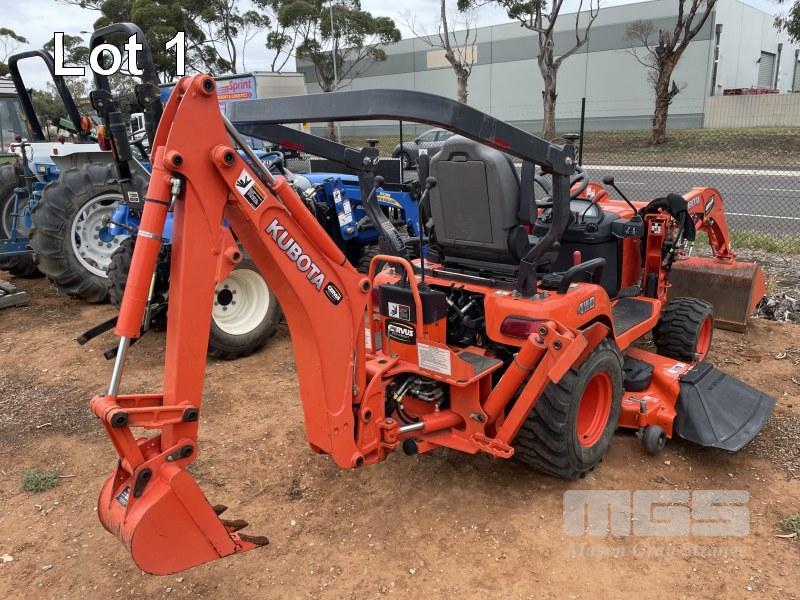 KUBOTA BX25DLB TRACTOR/FE LOADER/BACKHOE/MOWER HOURS: 350 hours KUBOTA, 3 CYLINDER, DIESEL, S/NO: 25576 WITH KUBOTA LA240 FE LOADER ATTACH & GP BUCKET KUBOTA RCK60B23BX MOWER DECK KUBOTA BACKHOE ATTACH & STABILISERS