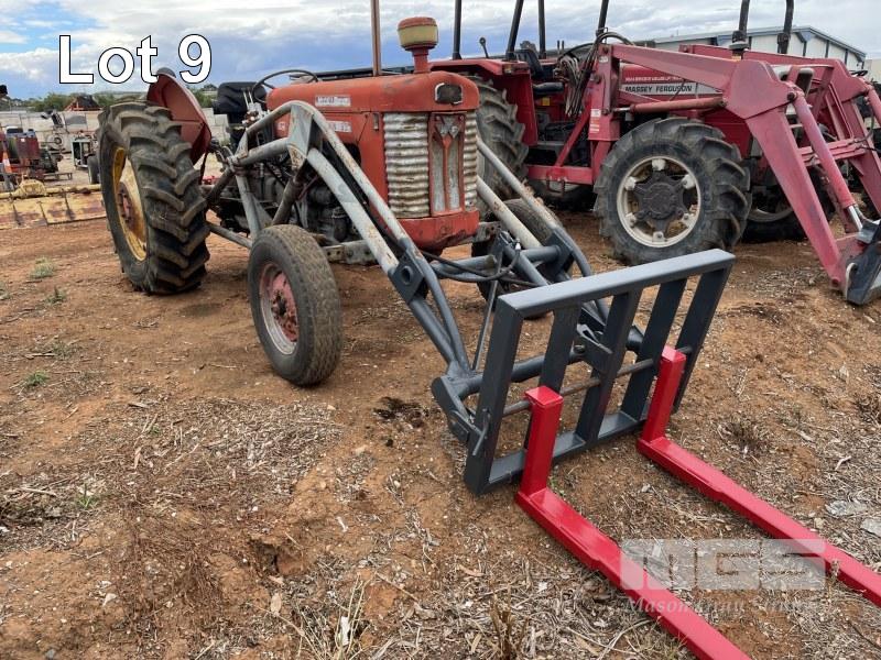 MASSEY FERGUSON 65 4x2 TRACTOR/FE LOADER DIESEL, HI/LO MANUAL 3PTL, PTO, HYDRAULICS WITH FE LOADER ATTACHMENT & FORKS