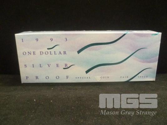 1993 PROOF 1 DOLLAR FINE SILVER COIN IN DISPLAY BOX SPECIAL FAIR ISSUE