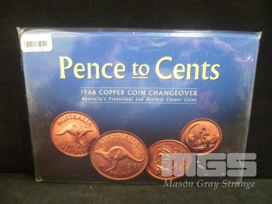 AUSTRALIAN PENCE TO CENT CHANGE OVER SET, 4 COIN SET IN FOLDER