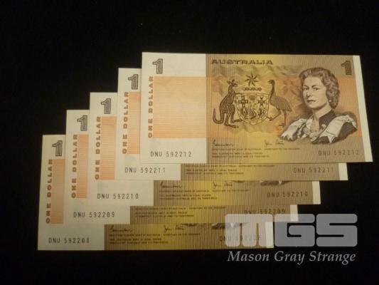 1982 5 x $1.00 NOTES CONSECUTIVE JOHNSTON STONE UNC