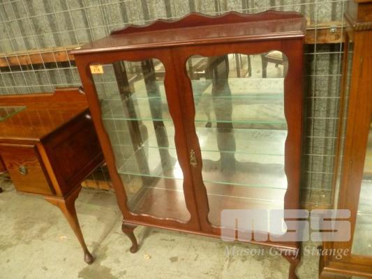 ROSEWOOD DISPLAY CABINET, 2 x GLASS SHELVES, MIRROR BACK