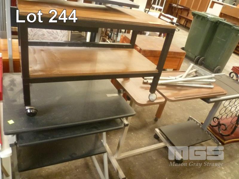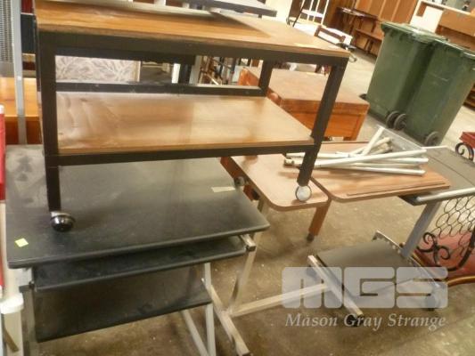 MOBILE PC DESK, 2 x MOBILE SERVING TABLES & SMALL MOBILE TABLE