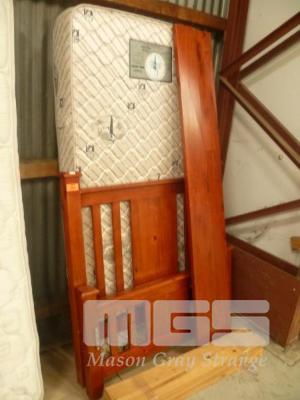 PINE SINGLE BED WITH MATTRESS, TIMBER SLAT