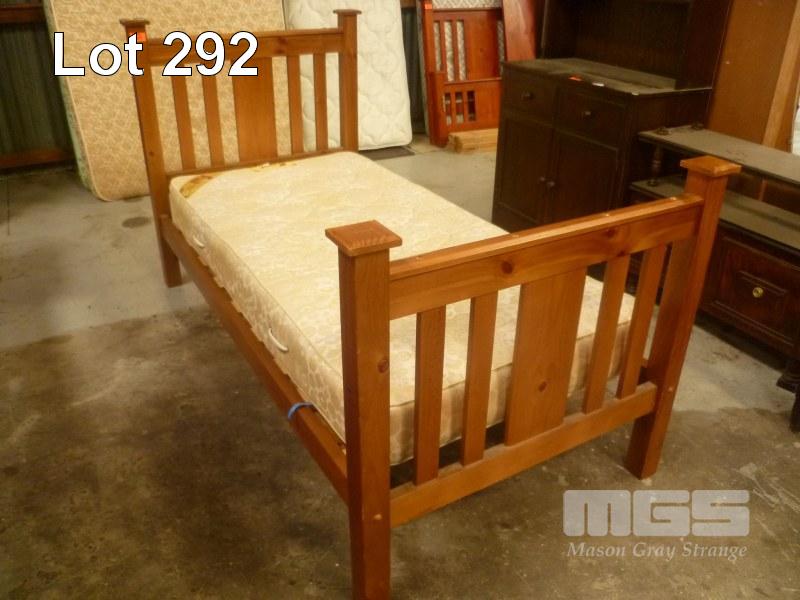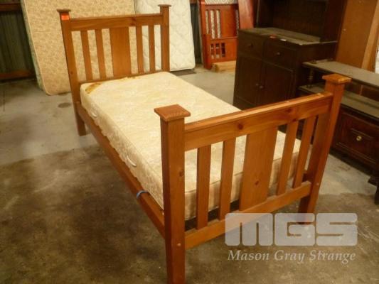 PINE SINGLE BED, TIMBER SLAT WITH MATTRESS