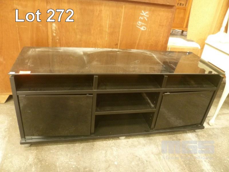 BLACK LOWLINE ENTERTAINMENT UNIT, GLASS TOP, 151cm (L)
