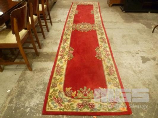 WOOL HALL RUNNER, RED BASE, FLORAL PATTERN, 416 x 90cm (W)