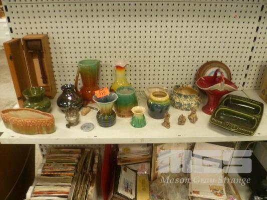 GLAZED POTTERY VASES, CERMAIC VASES, GAVEL, ETC