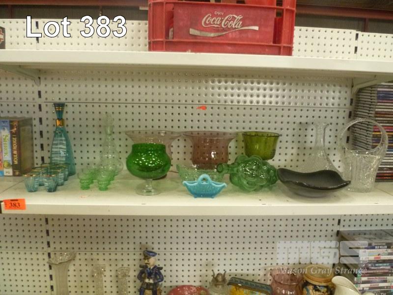 COLOURED GLASSWARE INC DECANTER SETS, BOWLS, ETC