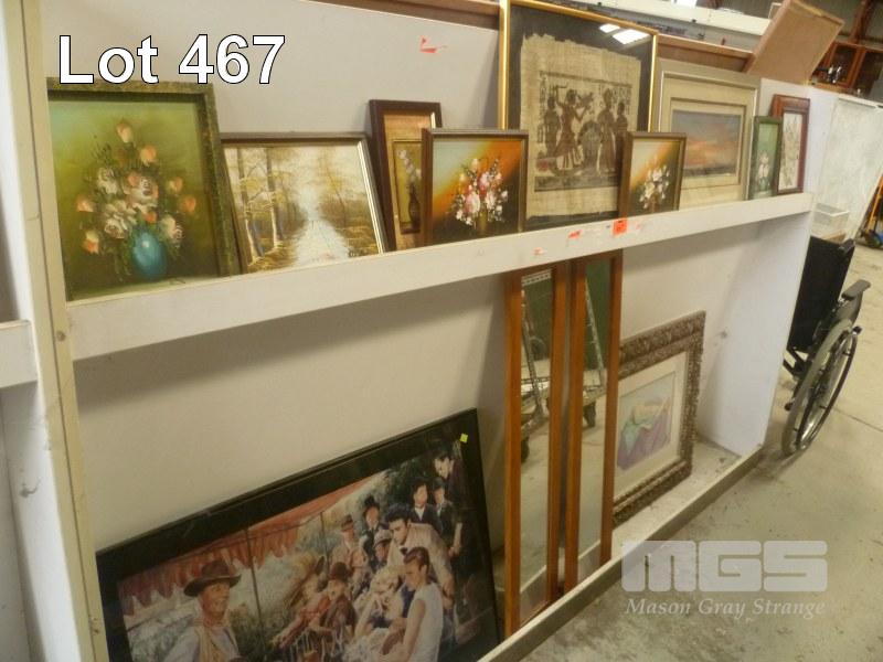 ASSORTED FRAMED PAINTINGS, MPRINTS & WALL ART & MIRRORS, 2 x TIERS