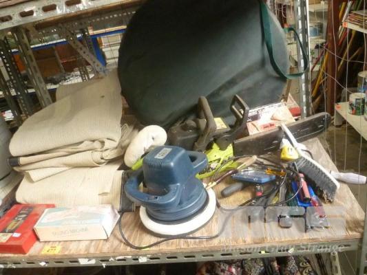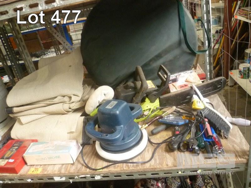 POULAN 14" PETROL CHAINSAW, BUFFER & ASSORTED TOOLS, SHADE SAILS & DOME TENT