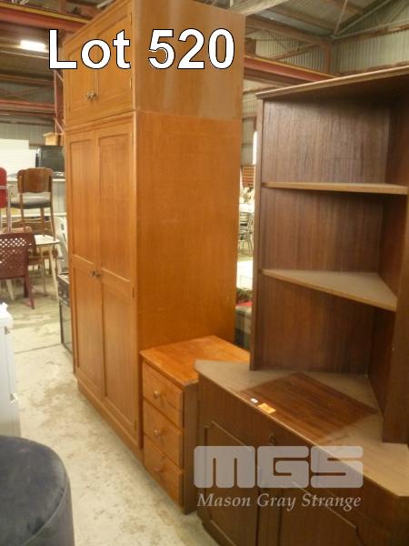 TIMBER CORNER SHELF UNIT WITH UNDERSTORAGE, PINE BEDSIDE CABINET & 2 PIECE WARDROBE