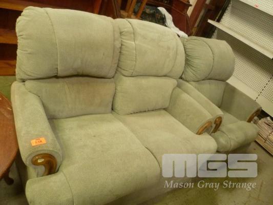 GREEN FABRIC 2 PIECE LOUNGE SUITE INC RECLINER & 2 SEATER