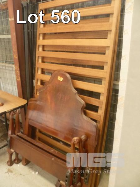 PAIR OF MID CENTURY SINGLE BEDS, TIMBER FRAME, TIMBER SLAT