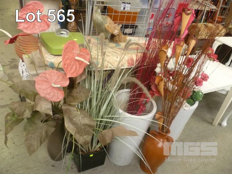 LARGE FLOOR VASES, ARTIFICIAL FLOWERS/PLANTS, IRONING BOARD, CLOTHES AIRER, ETC