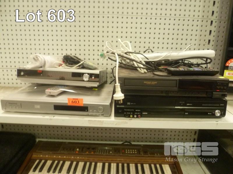 PANASONIC DVD/VCR COMBO, WITH REMOTE, DMR-EZ47V SANYO VCR, NO REMOTE MAGNAVOX DVDPLAYER WITH REMOTE, MDVD200 SANYO HD RECEIVER WITH REMOTE