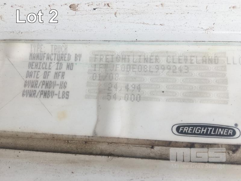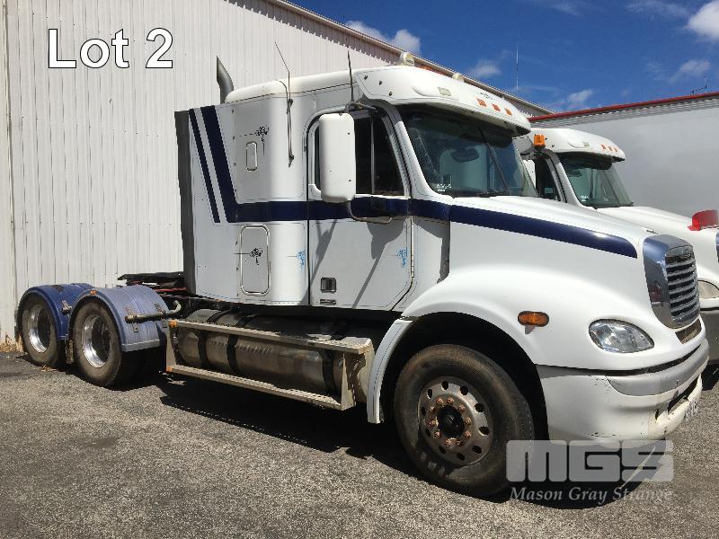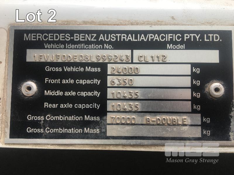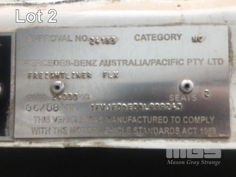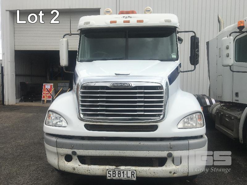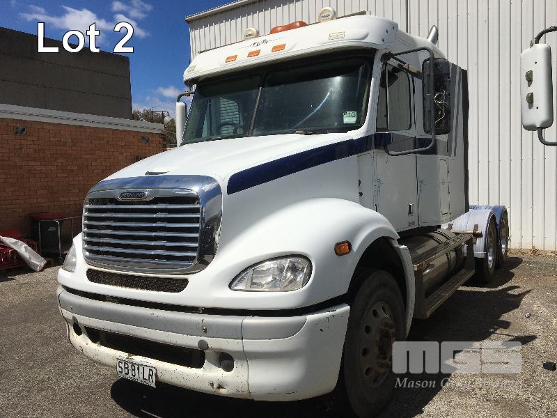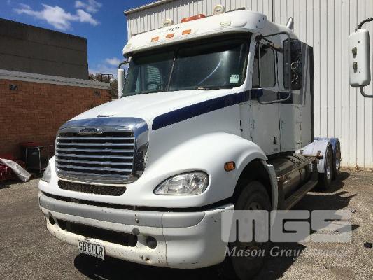 2008 FREIGHTLINER COLUMBIA FLX CL112 6x4 LONG NOSE PRIMER MOVER REG: SB 81 LR VIN: 1FVJF0DE08L999243 ENG: KCB92293 ODO: 928,442kms SHOWING GVM: 24,000kg GCM: 70,000kg CATERPILLAR, C13, EATON FULLER 18 SPEED MANUAL TRANSMISSION, DIESEL, AIRBAG SUSPENSION, WHITE DUCO, 11R22.5 2 DOORS, 2 SEAT, AIR CON, ALLOY RIMS, B DOUBLE RATED, CD PLAYER, CB RADIO, DUAL LONG RANGE TANKS, HYDRAULICS, SLEEPER CAB, TIPPER HOIST CONTROLS, VISOR, KEY #15 (WITH 1 KEY/S, WITH OWNER'S MANUAL)