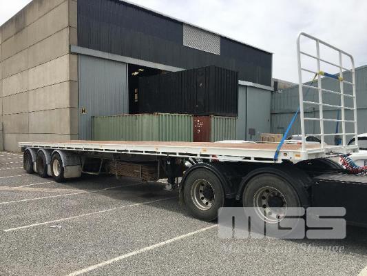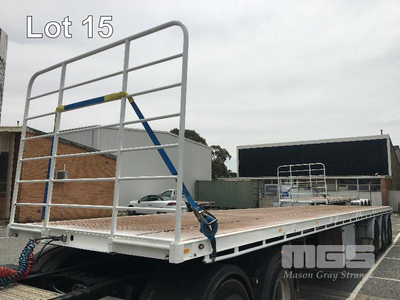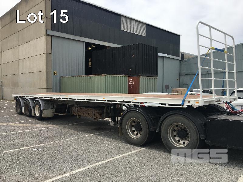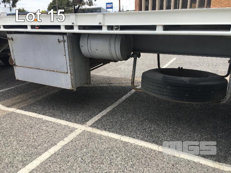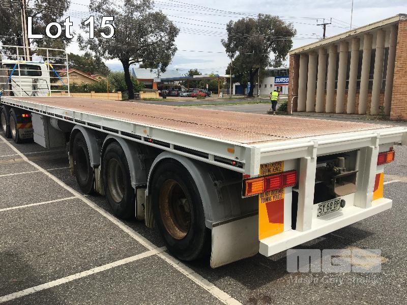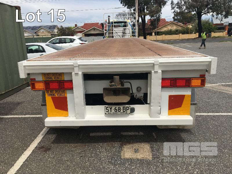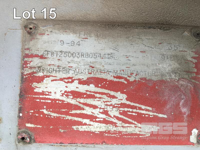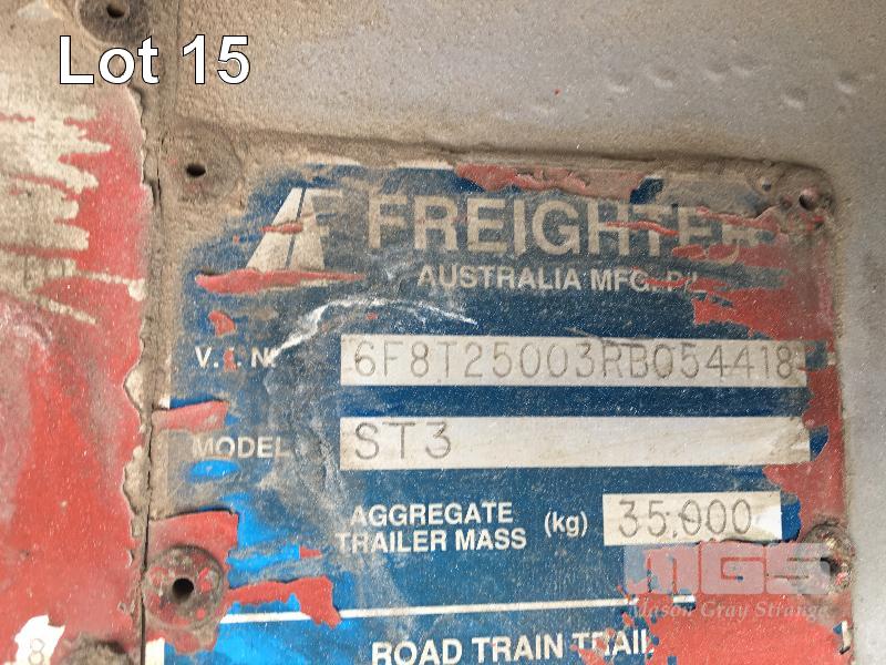 9 / 1994 FREIGHTER TRIAXLE FLAT TOP 'B' SEMI TRAILER REG: SY 68 BP (SA) VIN / CHASSIS: 6F8T25003RB054418 ATM: 35,000kg B DOUBLE, AIRBAG SUSPENSION, STEEL, 11R22.5, DRUM, RINGFEEDER, TOOLBOX, SET STEEL GATES SPARE WHEEL WATER TANK 7.5 & 5.4m