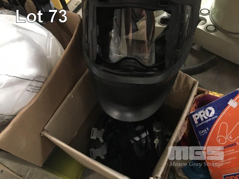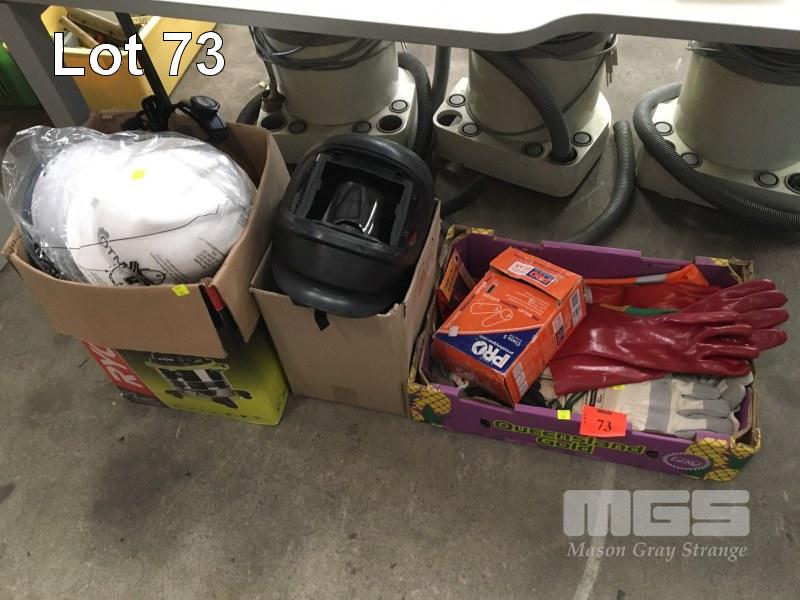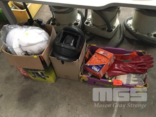 8 x HARD HATS, WHITE SPEEDGLASS WELDING HELMET, PVC CHEMICAL PROTECTION GLOVES, WORK GLOVES, EAR PLUGS, ETC, 3 x BOXES