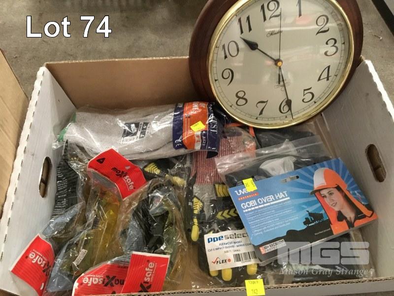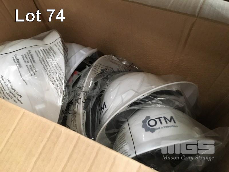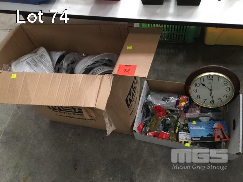 10 x HARD HATS, SAFETY GLASSES, WORK GLOVES & OVERHAT SUN PROTECTORS, 2 x BOXES