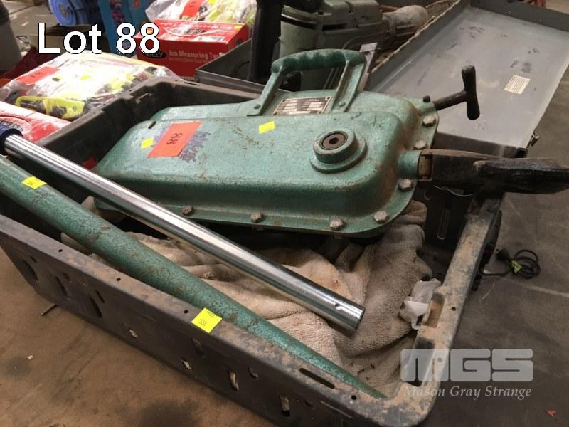 WITH HANDLE & SPOOL OF WIRE ROPE & HOOK