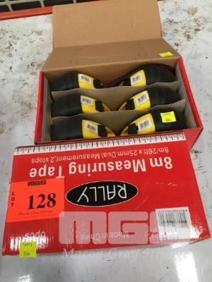 TAPE MEASURES, RALLY, 8m, DUAL MEASUREMENT, 2 x BOXES, 6/BOX, AS NEW