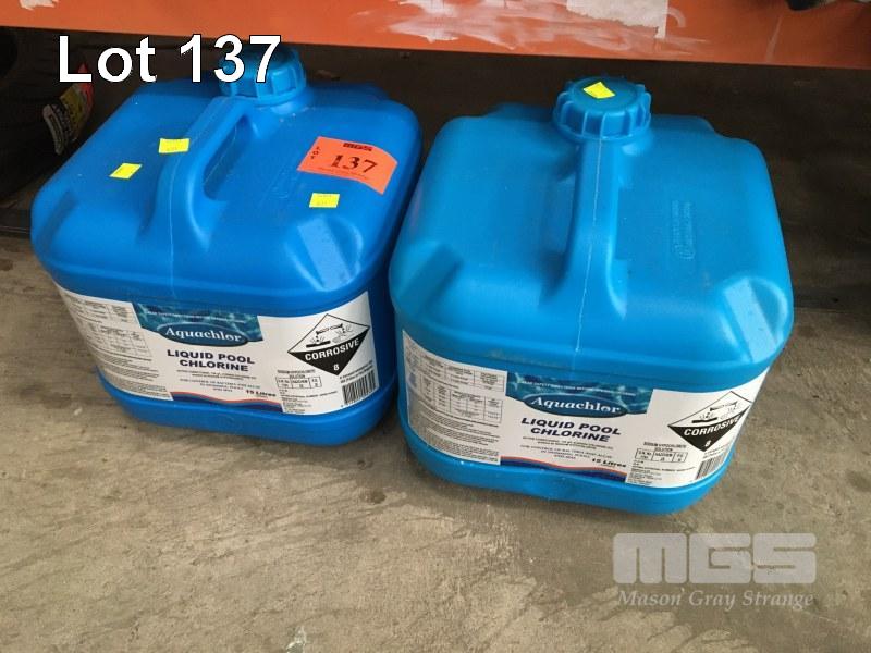 LIQUIDE POOL CHLORINE, AQUACHLOR, 130q/l SODIUM HYPOCHLORITE, 2 x 15 LITRE DRUMS