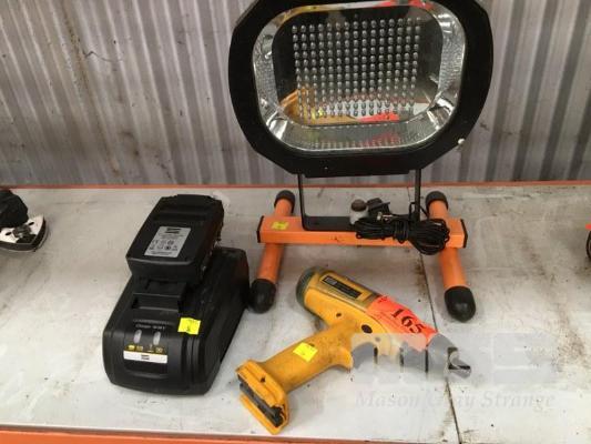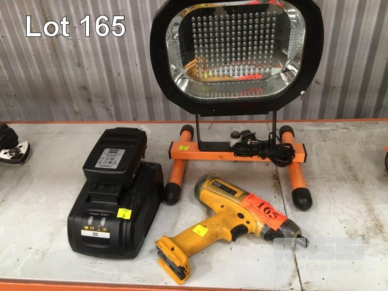 OSKA PORTABLE, RECHARGABLE LED WORK LIGHT, CHARGER WITH ATLA COPCO 18V DRIVER, 1/4", LI-ION BATTERY & CHARGER