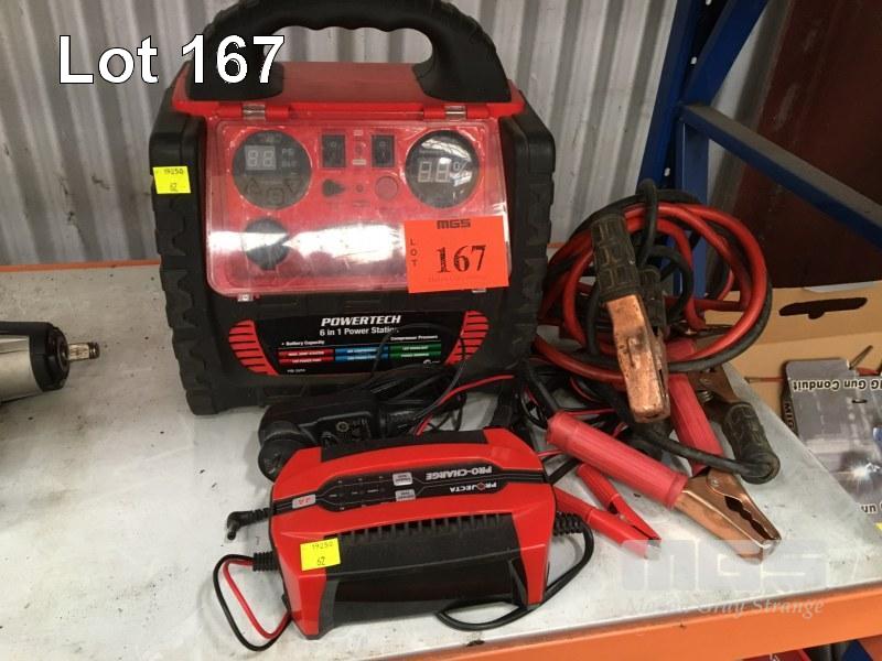 POWERTECH 12V CAR JUMPSTART, TYRE INFLATOR, 240V INVERTER ALL IN ONE WITH PROJECTA ELECTRONIC AMP BATTERY CHARGER