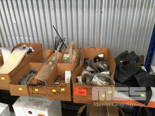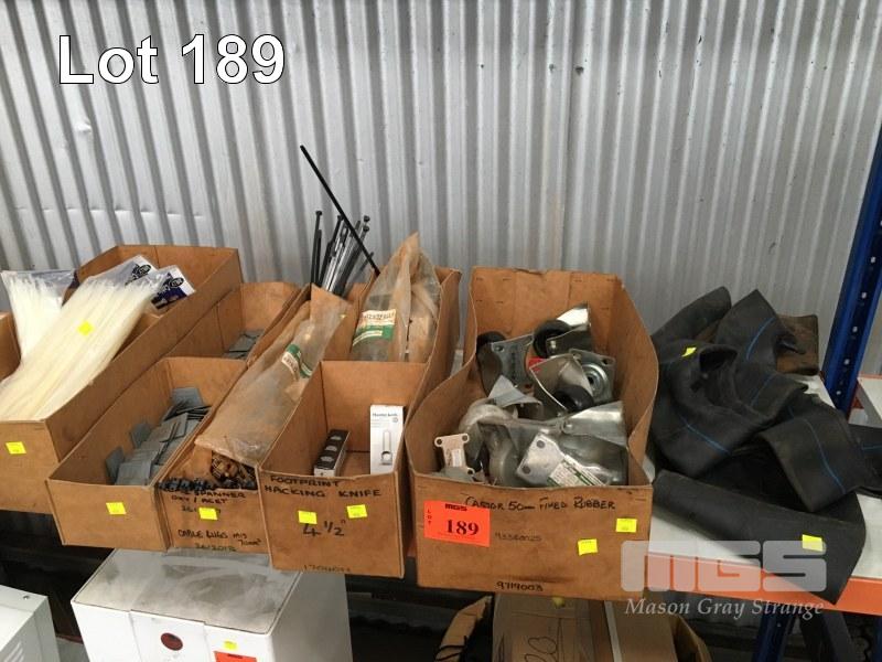 ASSORTED CABLE TIES, PLASTIC PADLOCKS, CASTOR WHEELS, ETC