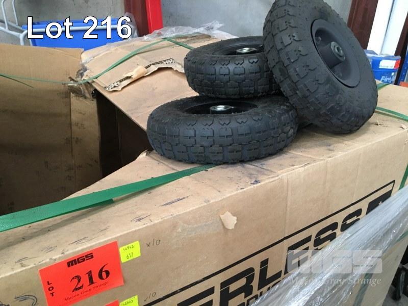 15 x PNEUMATIC WHEELS & RIMS, 10" NEW, FIT 12mm AXLE, 4.10/3.50-4, SUIT SACK TRUCK/AIR COMPRESSOR, ETC