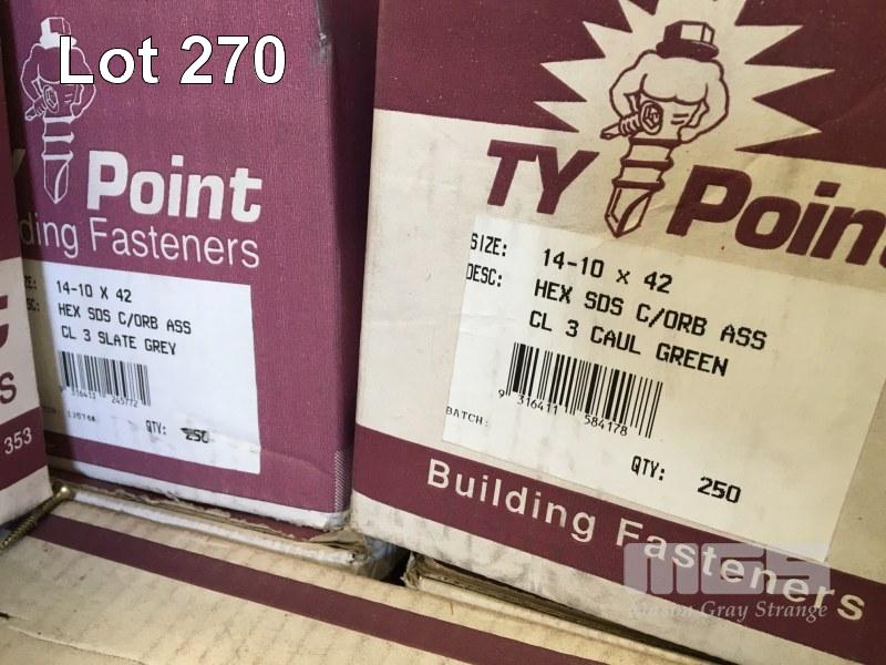 28 x BOXES TY POINT TEK SCREWS, HEX HEAD, 14-10x42mm, 250/BOX, 1 x PALLET