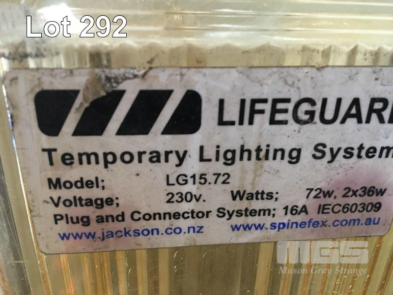 TEMPORARY LIGHTING SYSTEM, LIFEGUARD MOD: LG15.72 WEATHER PROOF LINKABLE SYSTEM 72w FLUOR, 249V ROUND PIN CONNECTION APPROX 15 UNITS 1 x IBC WITH TOP CUT OFF