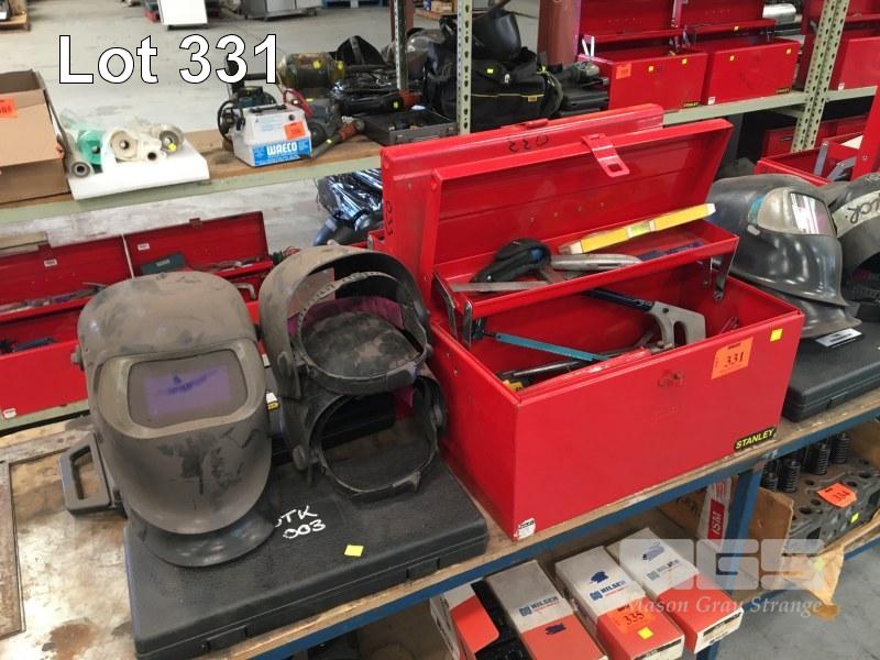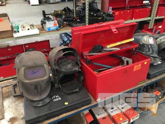 2 x TOOL BOXES & ASSORTED HAND TOOLS, 2 x AUTO TINT WELDING HELMETS & 2 x DRIVER SETS