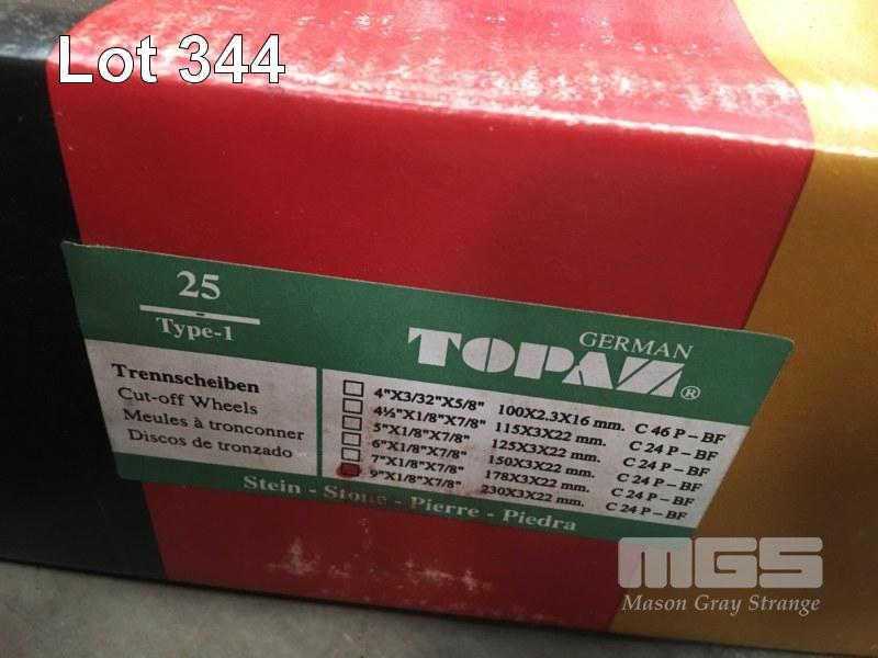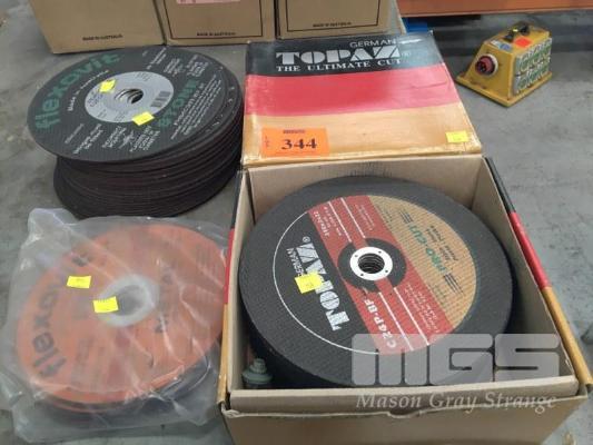 FRICTION CUT OFF DISCS, GERMAN TOPAZ C24P-BF, 230 x 3 x 22, 2 x BOXES (25/BOX) WITH 28 x FLEXOVIT STONE 230 x 3.2 x 35mm & 10 x METAL 203 x 2.5 x 35mm