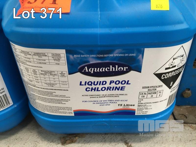LIQUIDE POOL CHLORINE, AQUACHLOR, 130q/l SODIUM HYPOCHLORITE, 2 x 15 LITRE DRUMS