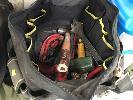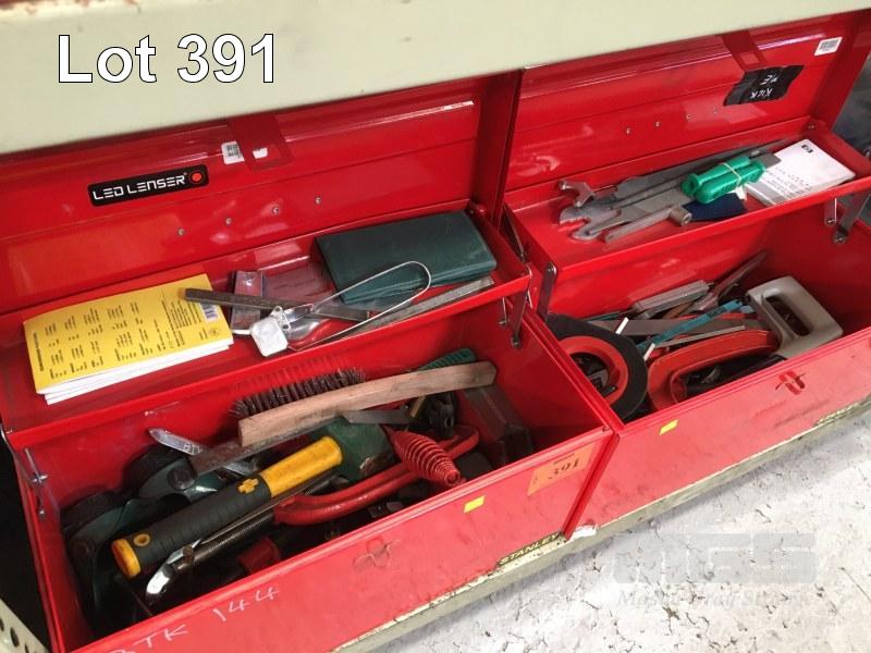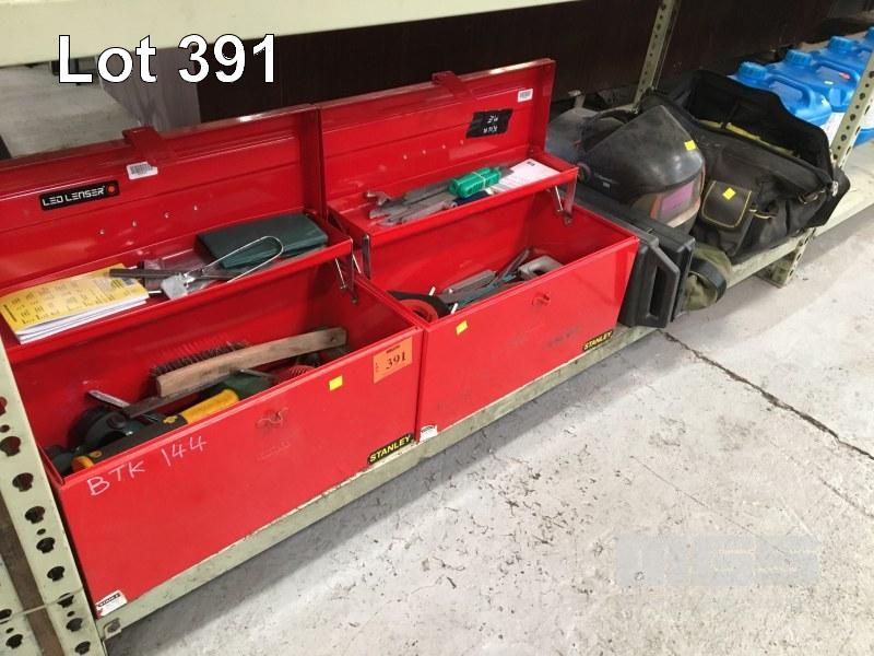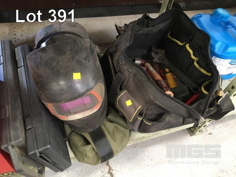 2 x TOOL BOXES & ASSORTED HAND TOOLS, DRIVER SETS & 2 x WELDING HELMETS