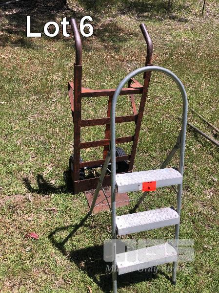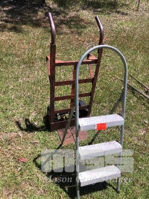 HEAVY DUTY SACK TRUCK, PNEUMATIC WHEELS & SMALL STEP LADDER