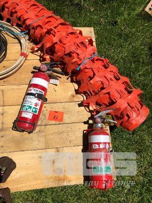 2 x BFM FIRE EXTINGUISHERS, 1kg POWDER TYPE & 1 x ROLL ORANGE SAFETY BARRIER