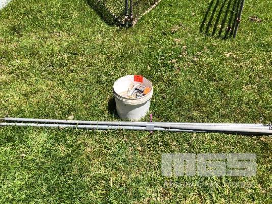 5 x LENGTHS GALV TUBE, (TENT POSTS) & BUCKET, HARDWARE, SCREWS, ETC