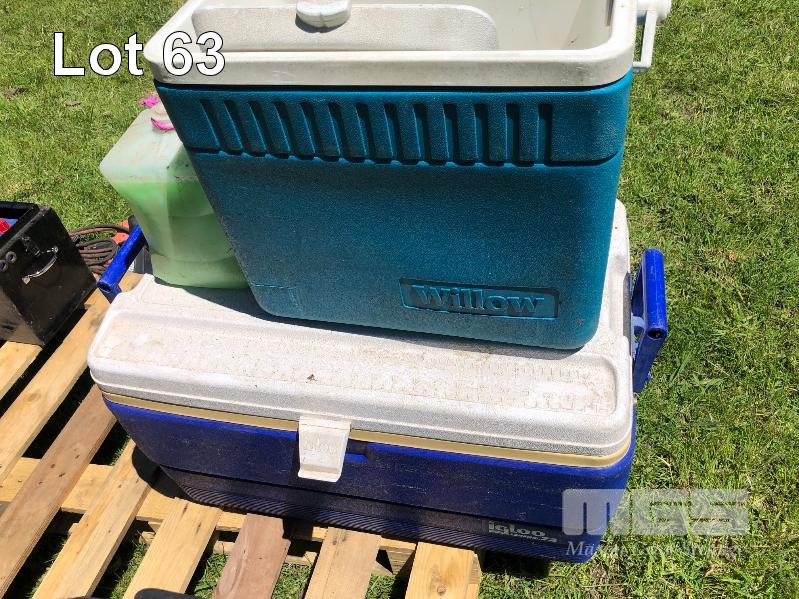 2 x COOLERS, IGLOO 72 & WILLOW 33 LITRE & HAND WASH, 4 LITRES.
